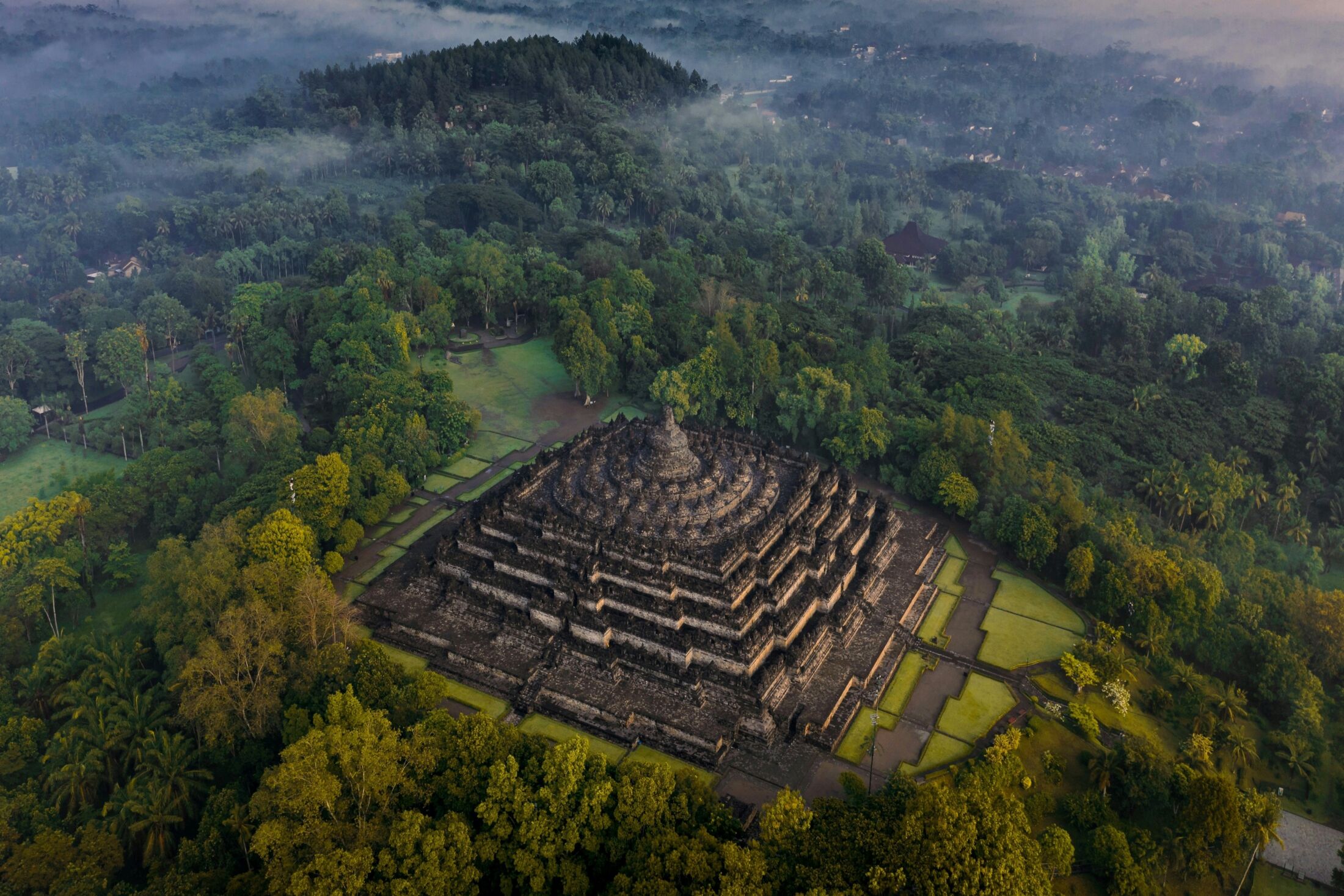 Borobudur to największa buddyjska świątynia świata! Została wzniesiona w VIII–IX wieku. Kompleks ten jest więc 300 lat starszy od Angkor Wat i 400 lat od europejskich katedr. Całość składa się z dziewięciu tarasów, które zdobi ponad 2600 reliefów, ponad 500 posągów Buddy i 72 stupy. Zbudowana na planie mandali, symbolizuje drogę do oświecenia. Świątynia przez wieki była ukryta pod warstwą popiołów wulkanicznych i dżungli, aż do jej ponownego odkrycia w XIX wieku.