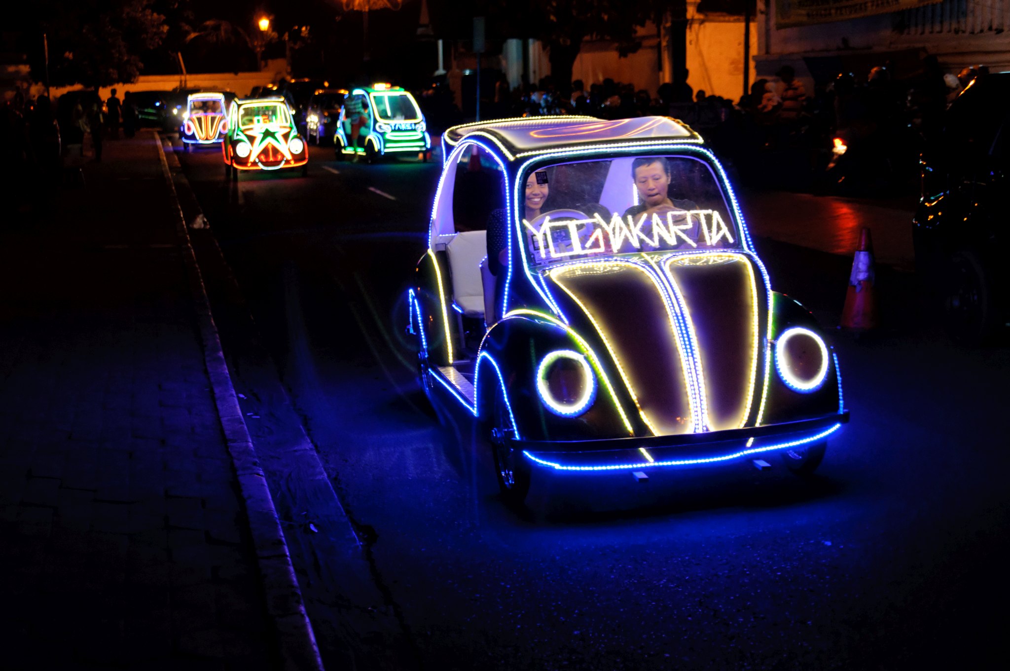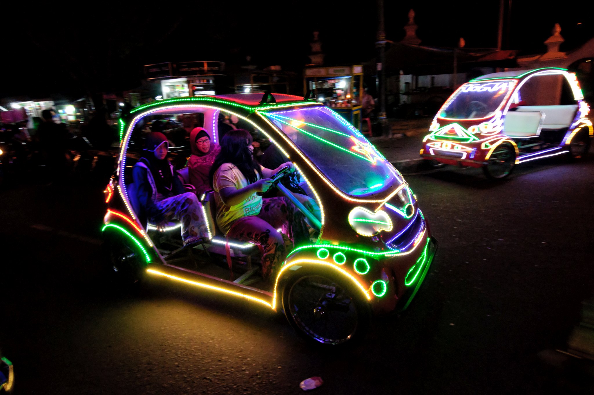 Wieczór spędzimy zaś na Alun-Alun Kidul – południowym placu miasta, który po zmroku zamienia się w przestrzeń spotkań mieszkańców. Charakterystyczne, podświetlane pojazdy i swobodna atmosfera tworzą zupełnie inny, bardziej rozrywkowy klimat, oferując ciekawe możliwości do nocnej fotografii.